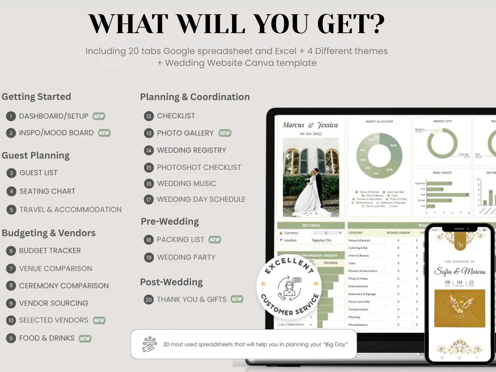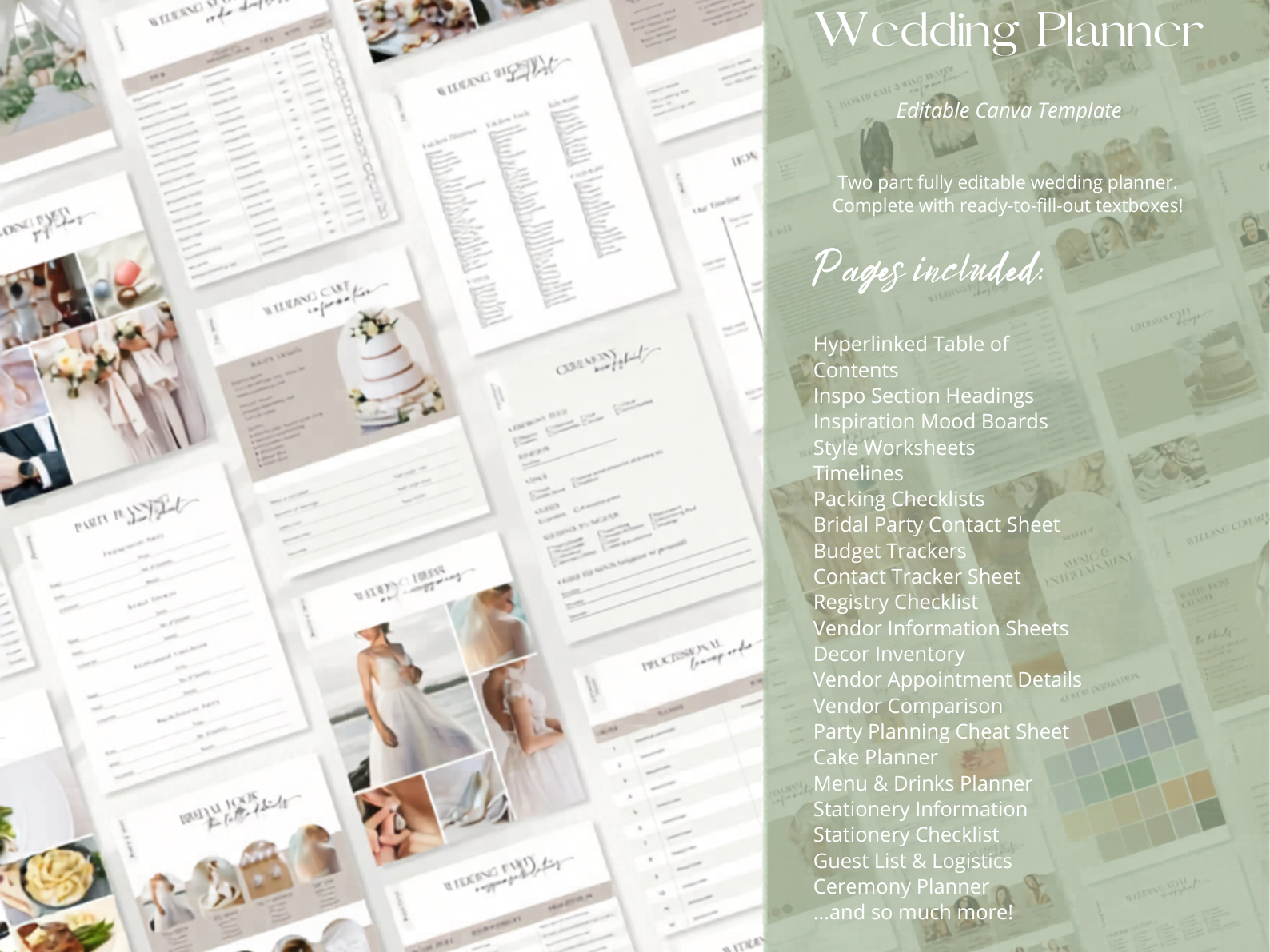 The only digital bundle with a 400-page Canva planner, automated budget tracker, animated invitations, 600 Lightroom presets AND a honeymoon planner β all for one low price. Everything editable, everything instant.